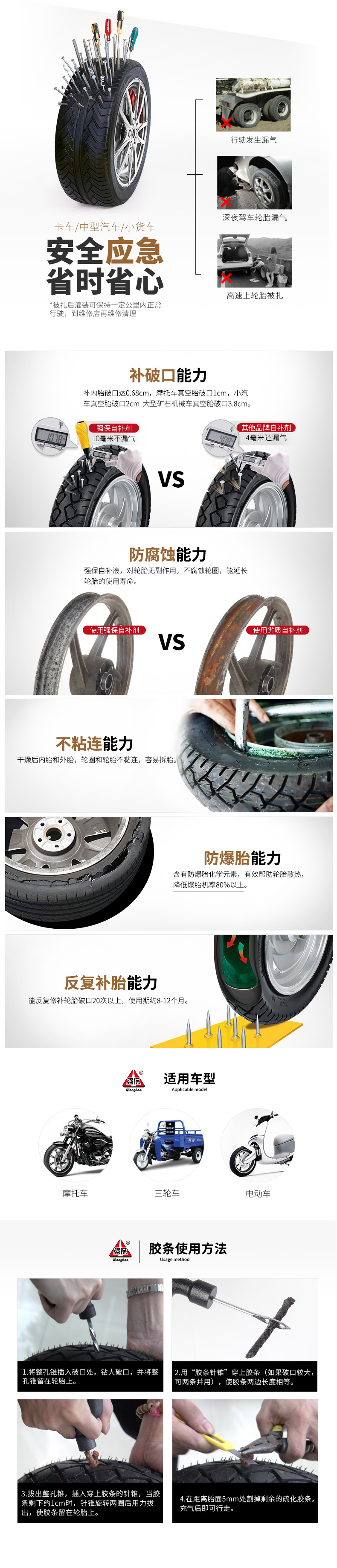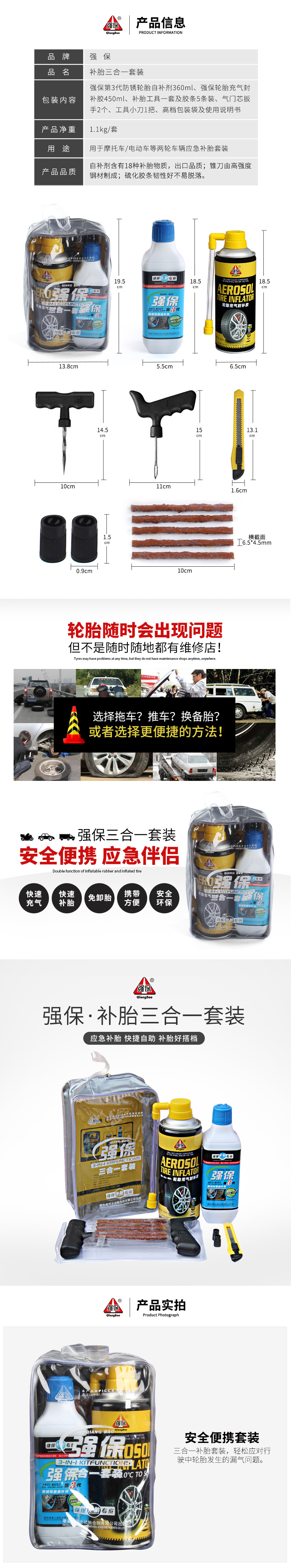 Two-wheeled vehicle emergency tire repair kit for motorcycles/electric vehicles