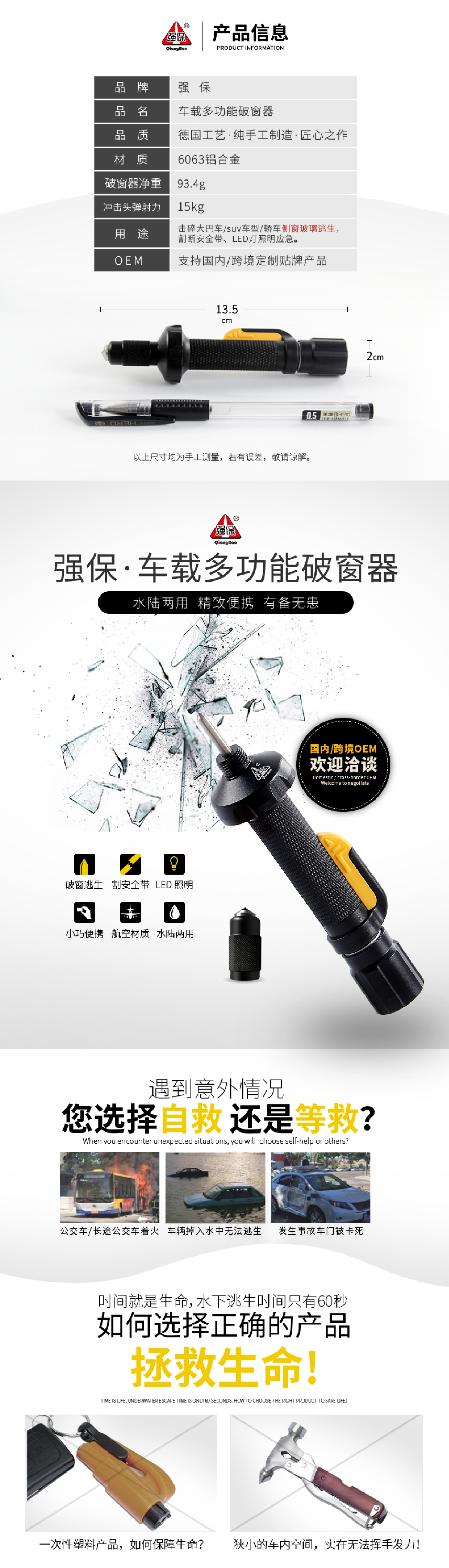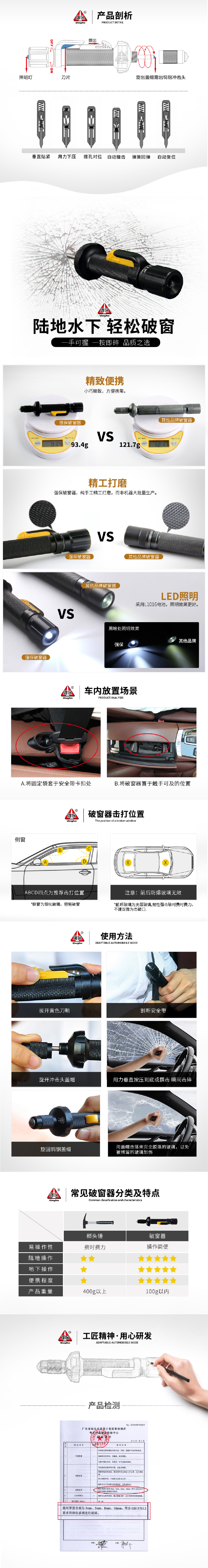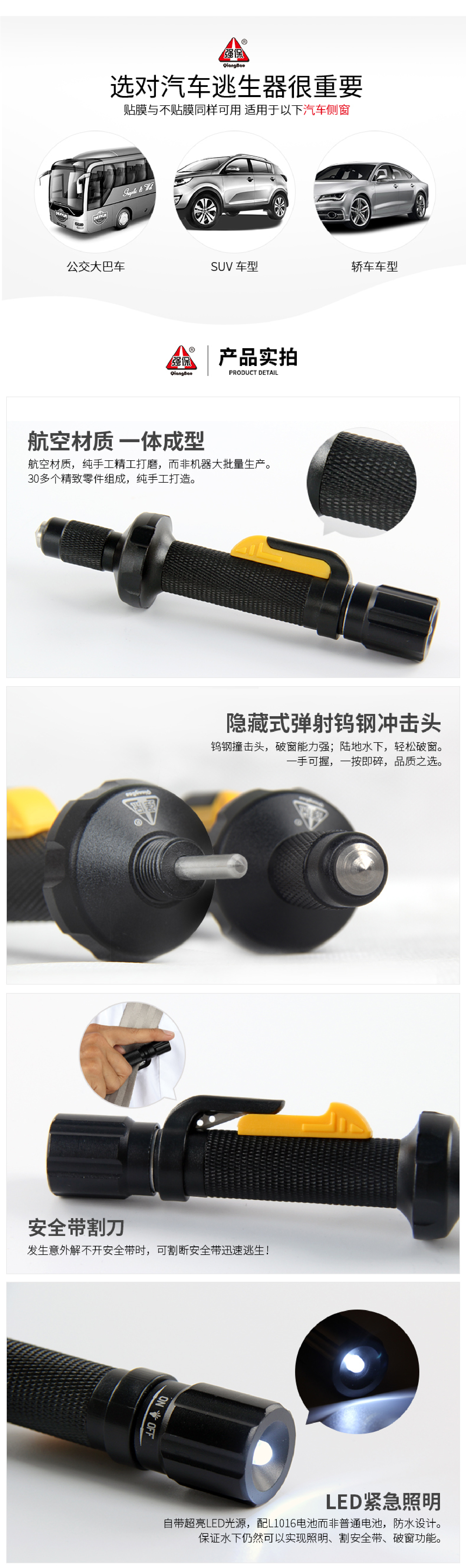 - Use Crush the bus / suv model / car side window glass escape, cut off the seat belt, LED lighting emergency